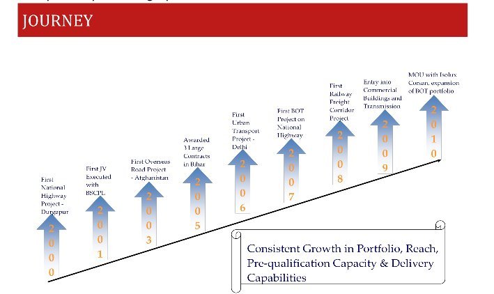 2010 MoU with Isolux Corsan of Spain; bagged two BOT road projects in Bihar with BSPCL Infrastructure Limited.